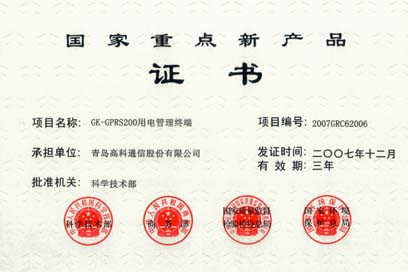 2007年6月29日,公司取得“國家重點新產(chǎn)品證書”